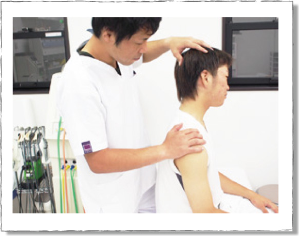 - 視診・触診各種徒手検査にて患部の損傷・状態をチェックし今後の治療方針を決定していきます。